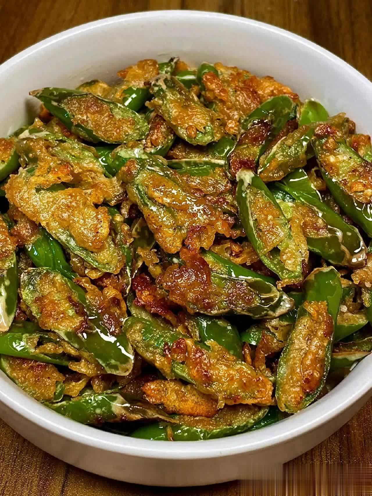 这菜吃起来焦香酥脆,香香辣辣的巨下饭,搭配刚出锅热乎乎的馒头也巨好吃!